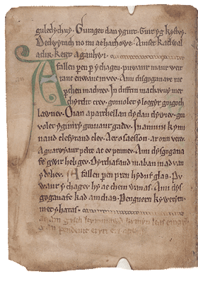 There is another sequence of verses telling the same story in the manuscript known as Peniarth 3. Some of these verses are the same as those in the Black Book, some are different, and they are in a different order. Ifor Williams dates the Peniarth verses earlier than those in the Black Book but also suggests that they come from a different source (**). This implies a lost original with multiple variations of which only two survive, though they may also have given rise to other sequences such as the prophetic verses contained in the ‘Prophecies of Myrddin and Gwenddydd’ in The Red Book of Hergest. Gerald of Wales, writing before the Black Book verses were copied, also claims to have seen a manuscript containing Myrddin’s prophecies in Nefyn in North Wales. (***).